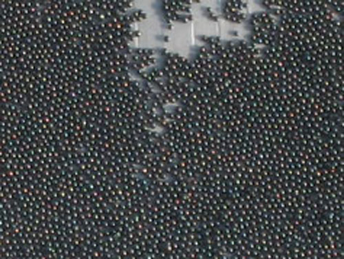 2、開啟拋丸器,人工向拋丸器流沙管內(nèi)加入少量彈丸。